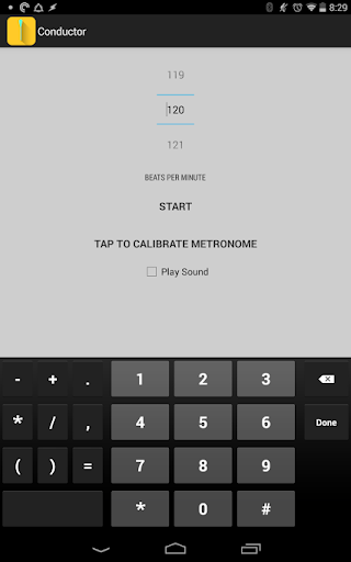 This is a simple metronome app. Open it up, choose a tempo, and your device will vibrate in time to the music.