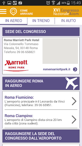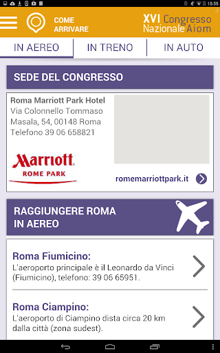 - Come arrivare, con informazioni su come raggiungere la sede congressuale in aereo, treno e auto;