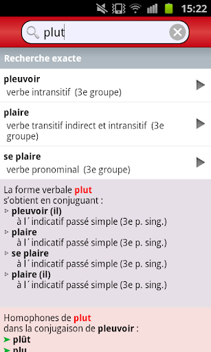 Grâce au moteur de recherche de l’application, vous pouvez rechercher un verbe :