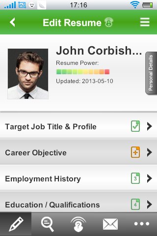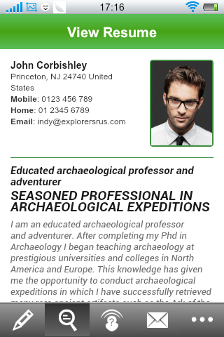 You can create, edit and share your resume via mobile as well as login online for a complete career management experience that offers the following free features: