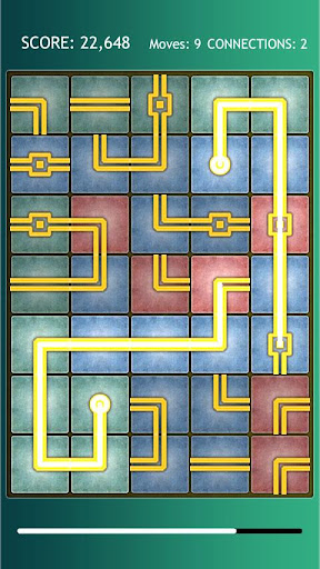 Puzzle game, switch the positions of the bricks to create a connection between the 2 source bricks.