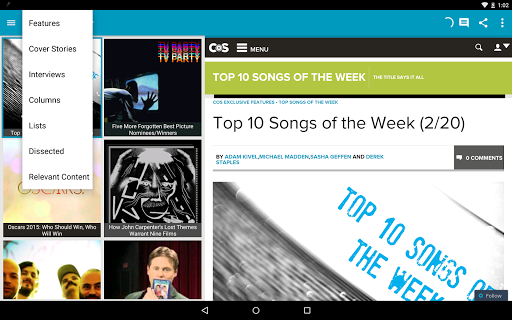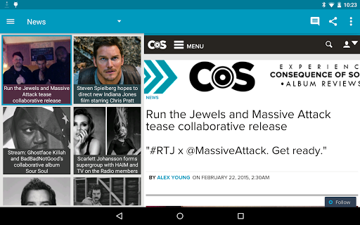 Consequence of Sound's newly designed mobile app brings you the latest music and film news, reviews, and editorials in an easy-to-read, sleek mobile format. Users can access all of the website's content, stream music and video, post comments, and more. The app also includes push notifications for breaking news updates.