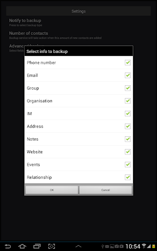 -- Advanced backup option (selected Contacts)