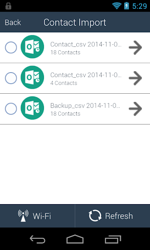 Import your contact from vCard, Outlook or Gmail Contact File, and Share contacts file with your computer via WIFI network.
