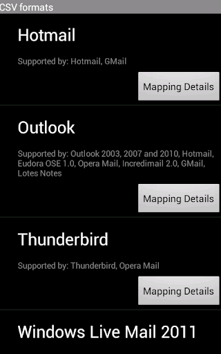 supported contacts csv formats: