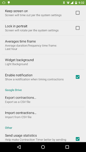 - Notification while timing contractions, providing start/stop and add/edit note actions and many Android Wear optimizations including note voice input