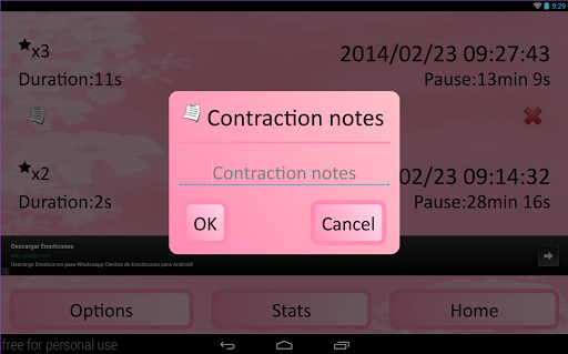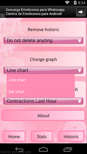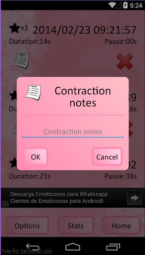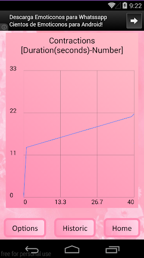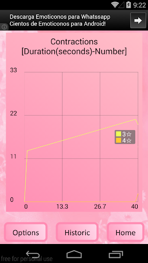 Check your evolution with a graph, the number of contractions per hour, the time of your last contraction and the average contraction time.