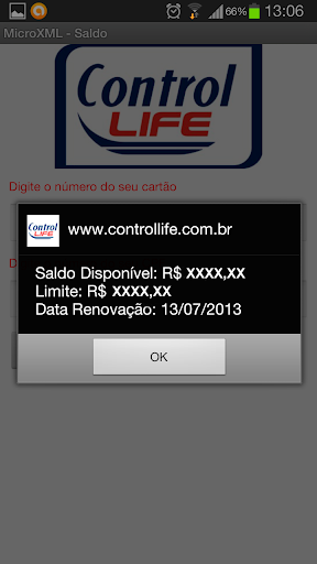 Consulta Saldo, Limite e Dia de Renovação do Cartão Convênio Control Life.