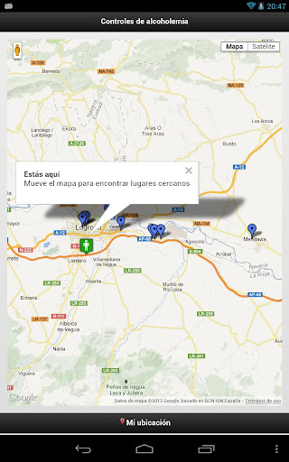 Utilizando la opción "Mi ubicación" verás solamente los controles de alcoholemia más cercanos a tu posición actual.