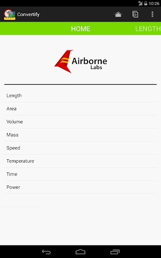 Convertify is the first app developed by Airborne Labs! It is a simple unit conversion tool that is designed to maximize productivity. Currently, the supported conversions are length, area, volume, mass, speed, temperature, pressure, flow, time, power, energy, and data. Convertify is intuitive and easy to use. The output updates as you type. It features a stunningly fluid and clean user interface optimized for convenience. Convertify also has a "copy" function that allows users to copy the current conversion with the respective units to the clipboard. Along with the copy function, the app offers the users a wide variety of color choices to customize the experience for maximum satisfaction.