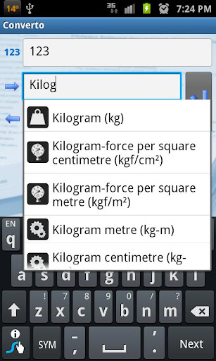 - Quickly find conversion units by description (e.g "Kilogram") OR by symbol (e.g "kg").