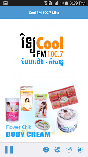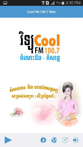 Cool FM 100.7 is a free application that let you listening live On-air on your Android devices. Cool FM 100.7 can also be listened live to nationwide through facebook: (www.facebook.com/coolfmpp) and website: (www.cool1007.com). Cool FM 100.7 has been operating in Phnom Penh since 2010 as an " Enrich - Entertain " Radio Station. On 1st November 2013 it moved to a new location and upgraded its capacity with a tower of 120m tall and a new antenna with the latest broadcast RDS technology.