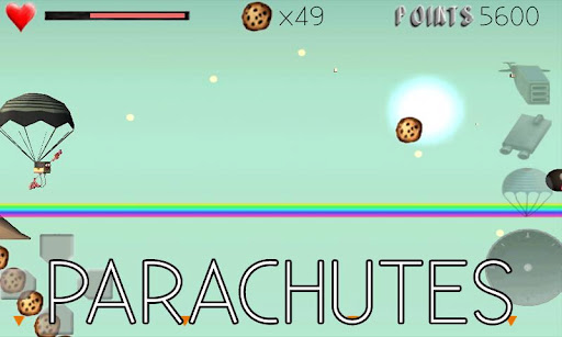 Jump, explode, boost, and bounce through the sky to eat as many cookies as possible! Upgrade your character to get high scores and time bonuses.