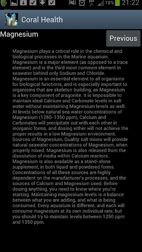 Coral Reef Parameters gives every reef aquarist easy access and information about several important parameters, what impacts they will have in your tank and how to manage them (dosing, reactors, controllers...)
