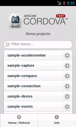 Cordova Fast, moreover, includes some open source demos useful to show Cordova (PhoneGap) features: then you can use these demos as blank projects (automatically syncronized throught Dropbox as before) in order to understand fast the Cordova (PhoneGap) environment.