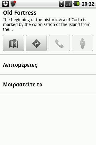With Corfu Tour Guide you can find your way inside Corfu town, as well as, acquire knowledge on the history of various places. You can also learn a lot about the history of the island and share your experience through popular social media (Facebook, Twitter).