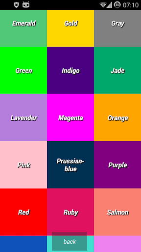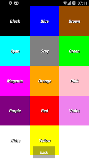 → Visual list of all available colors combined with audible list (easy and medium levels)