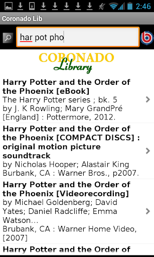 The Coronado Public Library (CPL) mobile app gives users access to the library’s catalog, databases, and their account. Access and download e-books or e-audio through Overdrive in one step. Renew borrowed items, place holds, check upcoming programs, view location and hours open. Scan the ISBN barcode of any book in a store and Boopsie will automatically scan the CPL catalog for the title to let you know whether the library has the title in its collection.