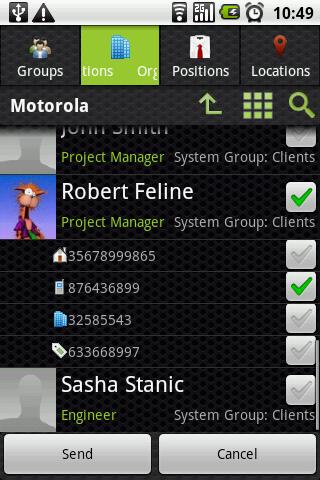* Fine-grain selection of addresses and phone numbers when sending group SMS and E-mail.