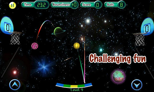 Race the clock as you try to make as many baskets as you can. But in space you can’t use your hands to aim the basketball – you must bounce it off a platform that moves as you tilt the device.