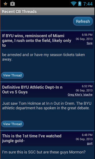 This is a great app for easy access to the latest CougarBoard message board threads and all the BYU sports news articles, blogs, videos, and tweets. This app is limited to read-only access, but provides links and web views for posting to the CougarBoard forum.