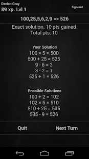 You have 60 seconds to solve the problem. For the exact solutions you get 10 points, for a non-exact solution up to 5 from the target you get 7 points and for a solution between 6 and 10 from the target you get 5 points.