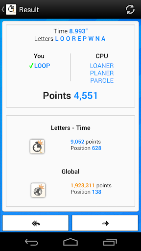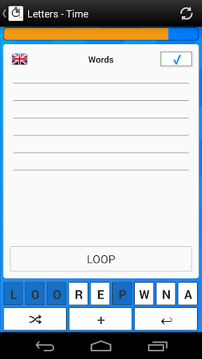 - Letters: with nine letters you must form a correct word in the chosen game language. As longer the word more points you get. Plurals and verb conjugations are correct words. In word games you can play in 8 different languages: English, Spanish, Catalan, Portuguese, Italian, French, German and Dutch. It can be played in four modes:
