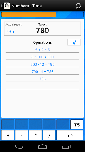 Numbers: helps to improve the mathematical calculation. The goal is to reach or approach a target number by combining six numbers with elementary arithmetic operations: addition, subtraction, multiplication and division. It can be played in four modes: