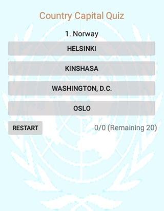 Have a fun and education time with family friends by picking correct capitals. Application will pick countries at random and show 4 city names. You need to pick one. Lets see how you do!!