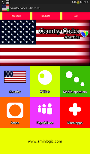 Country Codes - America is an application that helps you to get dial codes of cities, mobile phone operator codes, population and area by states for United States of America.