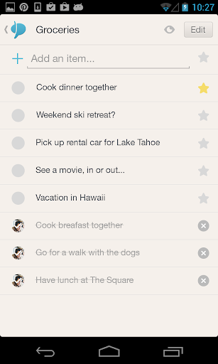 Couple 是最適合情侶使用的程式。它能幫助您輕鬆地與對方保持聯繫並分享生活中的小事情。在 Couple 裡面,您將有專屬於兩個人的頁面可以傳送好玩的影片或者照片。您也可以聊天,分享塗鴉,傳送錄音片段,傳達所在位置,甚至是輕鬆地讓對方知道您正在想他!如果兩個人同時在線上,還可以一起繪畫或者用拇指親吻:只要雙方同時碰觸螢幕,兩個人的手機都會震動。快用提醒項目設定生日或者兩個人的紀念日,然後用共同清單記錄去超市要買的東西吧!