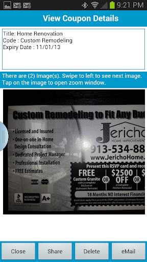 Don't carry coupon clippings around any more. CouponXchange application allows you to take snap shots of your coupons using your android phone. Using upload option you can type in a Title, Coupon code and expiry date for your favorite coupons. Also take a snap shot of the coupon itself and store it in your phone. When you need to use the coupon simply list the coupon and the application displays the coupon. A feature is also provided to zoom the coupon image in case you needed to view the coupon in detail. If the coupon provider allows you to share the coupons you can use the apps to share the coupon with another user who have downloaded and registered the application. Please ensure that you have validated the coupons that you want to use and all terms and conditions of the coupon provider is met. You may also exchange short messages with the person who is sharing the coupon with you. We find many coupons that are useless and lying around that may not be useful to us, but through a sharing process these coupons will find use by somebody else. How many times we find ourselves at a shop or salon needing a coupon ? through the use of this application one can instantly share coupons at places where they are needed most.