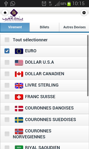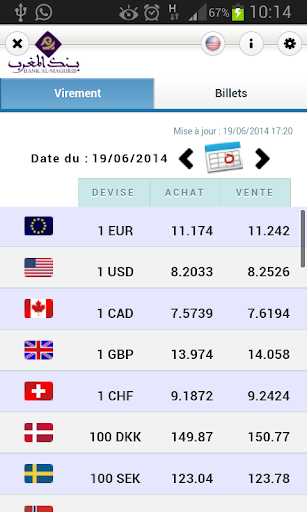 Application de consultation des cours de change virement et billet de banque des devises cotées par BANK AL-MAGHRIB.