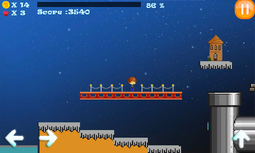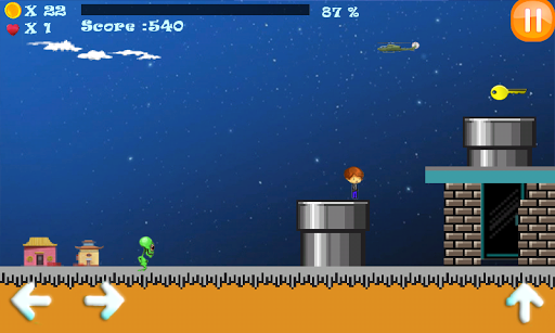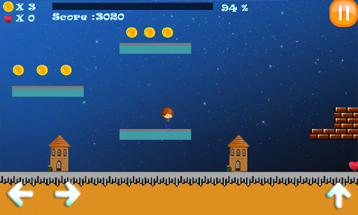 He hAs to collect mOre aNd mOre CoiNs and HeArts to maintain his health....He has to pRevent himself frOm moNsters and deViL copTers during his journey. He has to find the key so as to unlock the door to the next Level.... Just go sLow and be wise....