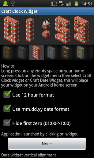 Craft Clock Widget is a widget that displays the date and time using the style of famous voxel games.