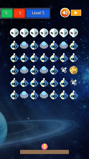 Level 6: Robots will be no more stable at the top in this level. As user starts the strike, the robots will start moving down towards the paddle and user’s challenge is to destroy all the robots before they reach down the deadline. If the user fails to destroy the robots and they touch the deadline, user is out of the level.