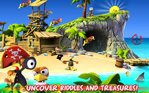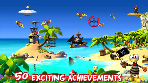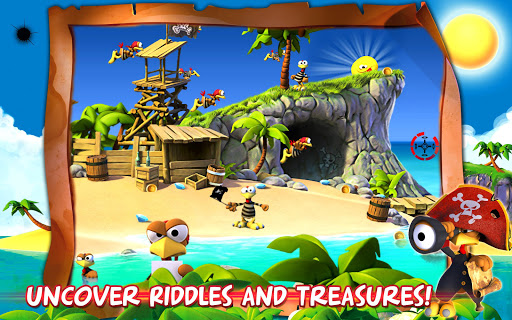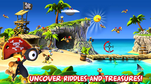 SHOOT ALL THE PIRATE CHICKENS DOWN as you hunt and uncover hidden secrets and treasures buried deep within the island.