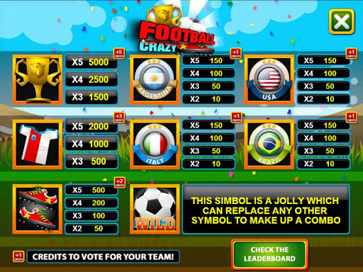 Have you got World Cup 2014 fever? If not, you’re sure to catch it with Crazy Football Slots, a fun filled free slot, fun play app that is sure to entertain for hours on end. Comical illustrations and fast zany sounds inject this game with the kind of kinetic energy you’re bound to encounter on a football field at the World Cup tournament. Imagery of formidable teams adorn the reels of this soccer inspired 5 reel 15 line fun-play casino game. Expect to see World Cup 2014 host and former winner Brazil, former host USA and former champions Italy and Argentina adorn the artwork of the reels. This football slots game also sports great World Cup apparel in the form of the coveted gold trophy, togs and tops, all adding to the fun and fever sweeping the world thanks to the World Cup 2014 tournament. Play for fun and play for free with Crazy Football Slots.