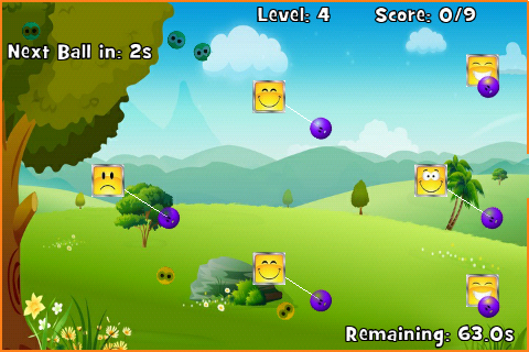 Com vários níveis onde aumenta o número de bolas e diminui o tempo, elevando a dificuldade.