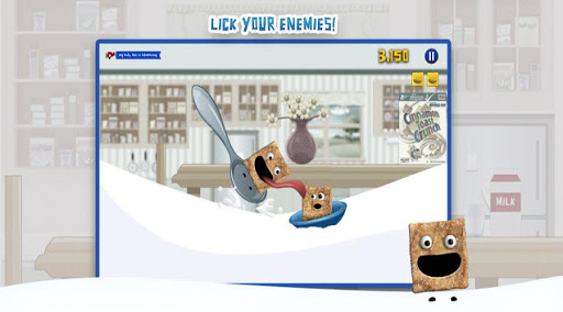 The object of the game is to have a smooth run and have fun (while licking and chomping Cinnamon Toast Crunch along the way). Power Ups will help move you faster. Any bumps, stumbles, licks or spills will slow you down. Just don’t let them slow you enough to get eaten!