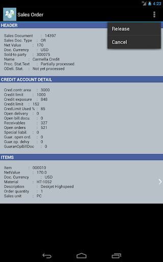 [This is mobile application for SAP ERP System] This application allow the credit manager to be able to check customers' credit limit, sales orders pending approval, and also allow the credit manager to approve or reject sales order from the mobile device instead of having to login to SAP ERP system.