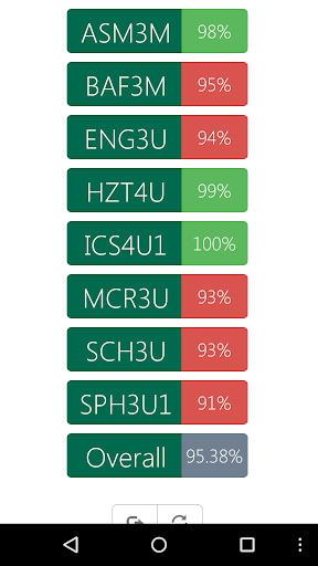- Coloured badges show if your average for a course is above or below your overall average (Red=Below and Green=Above)