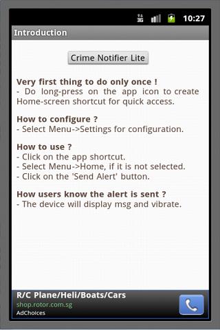 The Crime Notifier Lite allows you to protect from negative influence. Wherever you are, may be you are travelling, walking on the street, in the club, or even alone at home, if you feel that you are under negative influence, then this application will help to safe you.