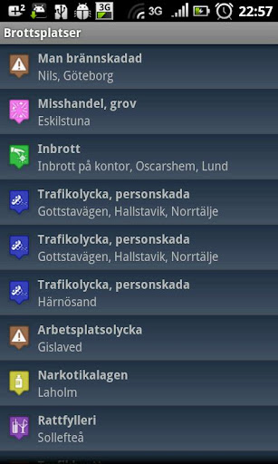 Application lets you browse reported crimes by the swedish police during the last 24 hours. All data is gathered through http://brottsplatskartan.se/brottsplatsstockholm-api which is maintained by Pär Thernström.