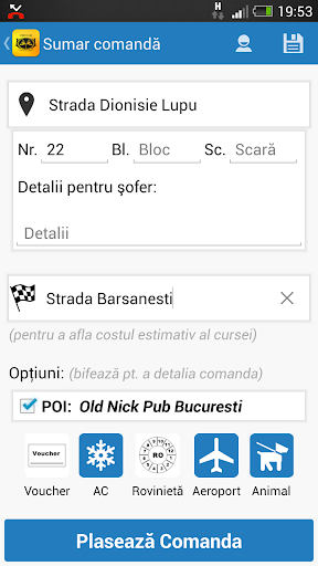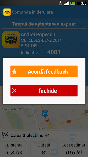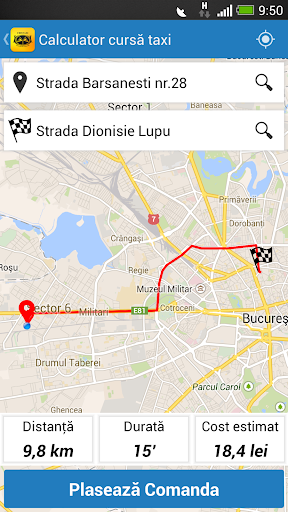 - oportunitatea de a calcula ruta si costul estimativ al cursei, introducand destinatia;