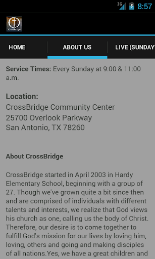 The official CrossBridge Community Church mobile application. Access our podcasts, blogs, videos, news, prayer wall, and more. Listen or watch recent archived messages and keep up-to-date through the Twitter feed. For more information about CrossBridge Community Church please visit: http://www.crossbridgecommunitychurch.com