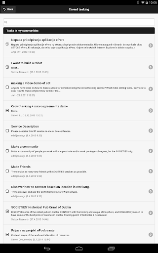 Crowd tasking is a service that helps people solve problems by utilizing the participatory power of a community. It also allows the possibility to collaborate in physical collaboration spaces, to speed problem solving activities. The service allows student and business oriented communities to describe problems, share them with community members and collectively try to solve them.