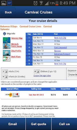 - Share the cruise you like with your friends via email