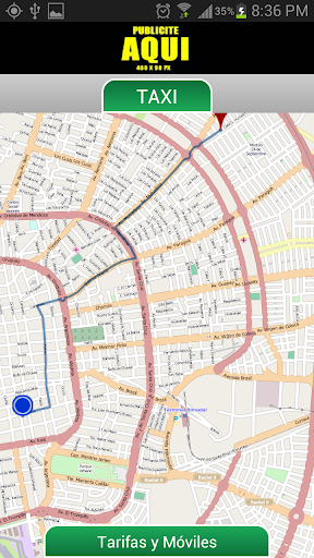 En este modulo el usuario es presentado el mismo plano de calcular ruta de micros, mostrando la ubicación georeferenciada de la ubicación actual por medio del GPS, el usuario escoge el destino deseado, la aplicación trazará la ruta mas directa al lugar indicado, y presentará la opción “tarifas y móviles” al hacer click sobre esta opción tenemos un cuadro que nos muestra la distancia hacia el lugar, el tiempo aproximado de viaje y la tarifa aproximada que cobrará el móvil por el servicio.