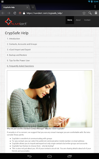 Secure doesn't have to be boring. CrypSafe was built from the latest in Android technology. Unlike other Android contact managers, CrypSafe is not just a set of new skins on the same old Android contact database.